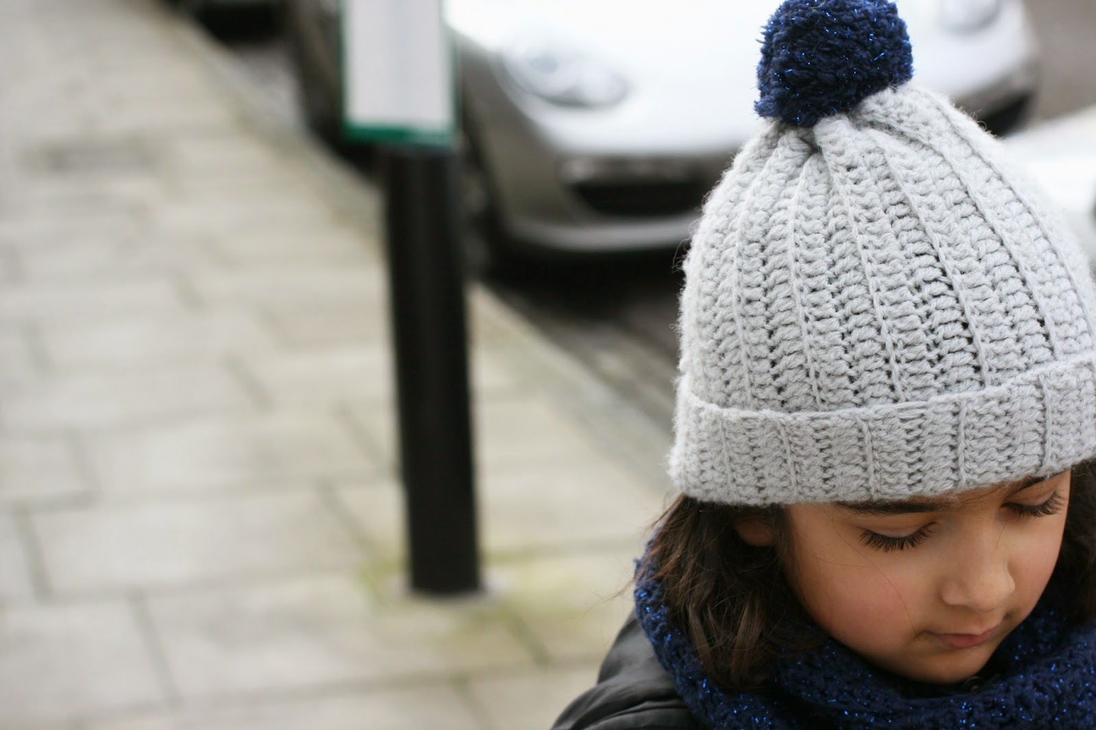 Two hats for two of my favourite heads. Both a plain rib (after the foundation chain you stitch into the back loops only) and a pom pom. Made on a pom pom maker too thank you very much, no messing about with cut cereal box circles.